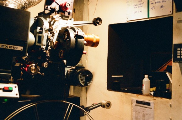 The projectionist prepares the spools of films which are fed over the projector’s rollers, then through the sprockets inside, before finally reaching the lens at a rate of 24 frames per/sec.